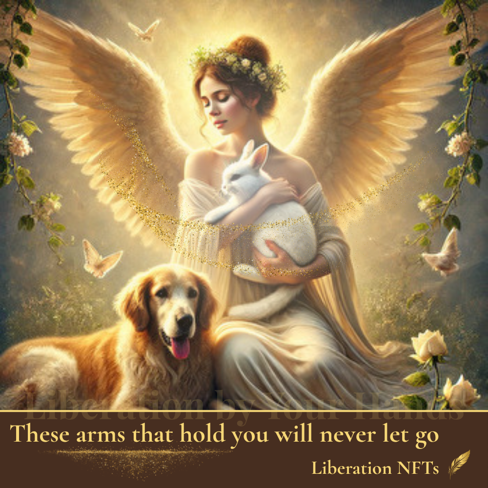 Through angelic figures embracing animals, it conveys a vow never to abandon them.